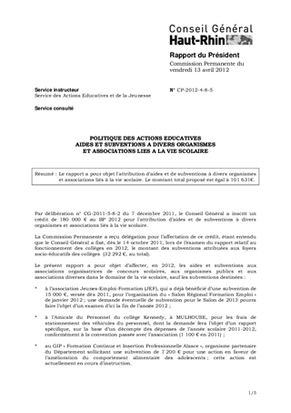 POLITIQUE DES ACTIONS EDUCATIVES AIDES ET SUBVENTIONS A DIVERS ORGANISMES ET ASSOCIATIONS LIES A LA VIE SCOLAIRE