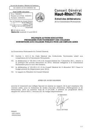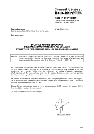 POLITIQUE ACTIONS EDUCATIVES PROGRAMME FONCTIONNEMENT DES COLLEGES SUBVENTIONS AUX COLLEGES PUBLICS POUR LES EMPLOIS AIDES