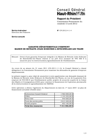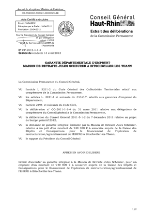 GARANTIE DÉPARTEMENTALE D'EMPRUNT MAISON DE RETRAITE JULES SCHEURER A BITSCHWILLER LES THANN