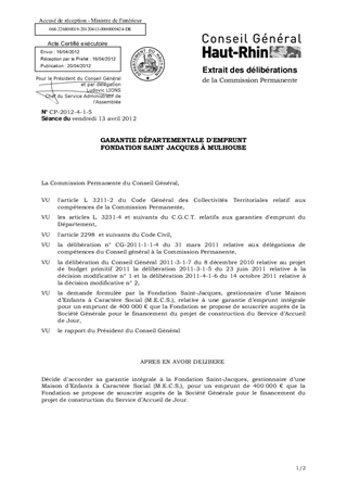 GARANTIE DÉPARTEMENTALE D'EMPRUNT FONDATION SAINT JACQUES À MULHOUSE