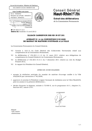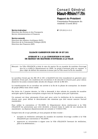 ILLZACH CARREFOUR DES RD 39 ET 201 AVENANT N 1 A LA CONVENTION N 95 2009 DE MANDAT DE MAITRISE D'OUVRAGE A LA VILLE