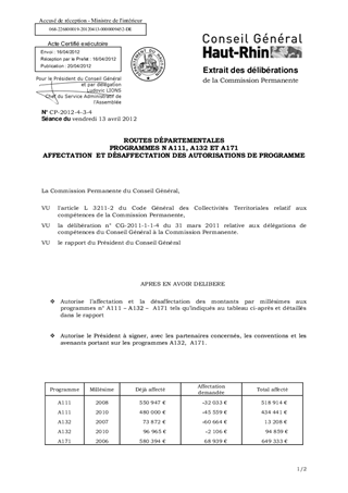 Le Règlement Financier dans son article 9.6 stipule que l’affectation et la désaffectation des Autorisations de Programme relèvent d’une décision de la Commission Permanente. Le présent rapport concerne les programmes n° A111 – A132 - A171.
