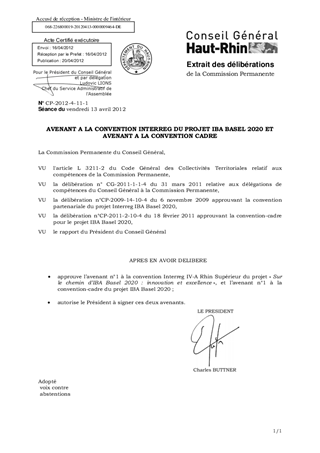 AVENANT A LA CONVENTION INTERREG DU PROJET IBA BASEL 2020 ET AVENANT A LA CONVENTION CADRE