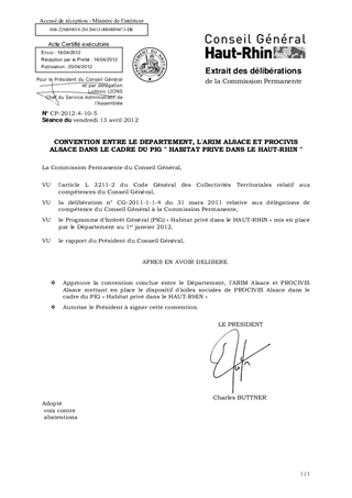 CONVENTION ENTRE LE DEPARTEMENT, L'ARIM ALSACE ET PROCIVIS ALSACE DANS LE CADRE DU PIG " HABITAT PRIVE DANS LE HAUT-RHIN "