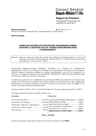 FONDS DE SOUTIEN AUX INITIATIVES TRANSFRONTALIERES SOUTIEN A L'EDITION 2012 DU "GUIDE D'EXCURSIONS POUR L'EURODISTRICT"