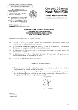 POLITIQUE DES ACTIONS EDUCATIVES PROGRAMME : VIE SCOLAIRE SUBVENTIONS POUR LES SORTIES SCOLAIRES AVEC NUITEES