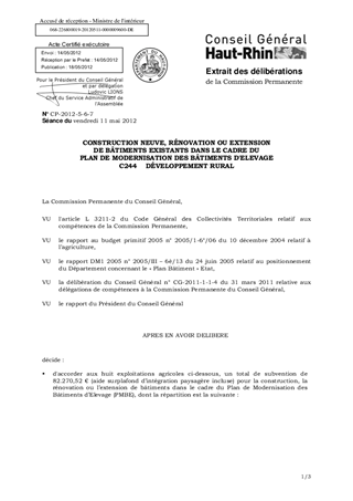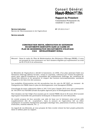 CONSTRUCTION NEUVE, RÉNOVATION OU EXTENSION DE BÂTIMENTS EXISTANTS DANS LE CADRE DU PLAN DE MODERNISATION DES BÂTIMENTS D'ELEVAGE C244 DÉVELOPPEMENT RURAL