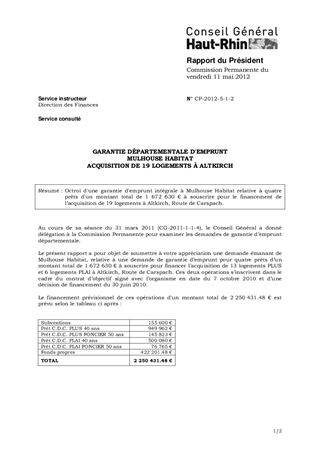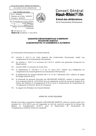 GARANTIE DÉPARTEMENTALE D'EMPRUNT MULHOUSE HABITAT ACQUISITION DE 19 LOGEMENTS À ALTKIRCH