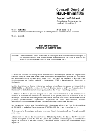 NEF DES SCIENCES FÊTE DE LA SCIENCE 2012