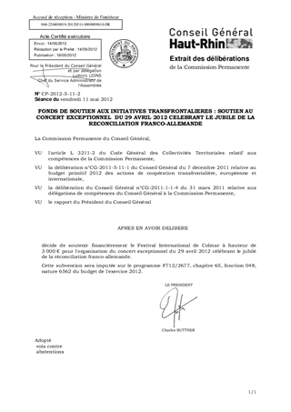FONDS DE SOUTIEN AUX INITIATIVES TRANSFRONTALIERES : SOUTIEN AU CONCERT EXCEPTIONNEL DU 29 AVRIL 2012 CELEBRANT LE JUBILE DE LA RECONCILIATION FRANCO-ALLEMANDE