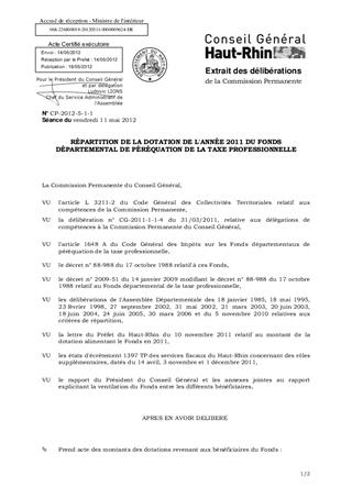Il est proposé à la Commission Permanente, dans le cadre du règlement de la péréquation 2011 du Fonds de prendre connaissance des différentes recettes affectées aux bénéficiaires.