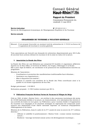 ORGANISMES DE TOURISME A VOCATION GENERALE