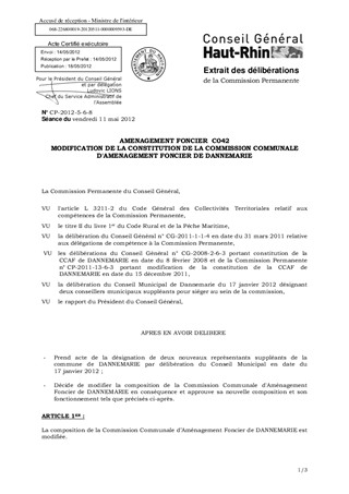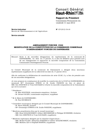 AMENAGEMENT FONCIER C042 MODIFICATION DE LA CONSTITUTION DE LA COMMISSION COMMUNALE D'AMENAGEMENT FONCIER DE DANNEMARIE