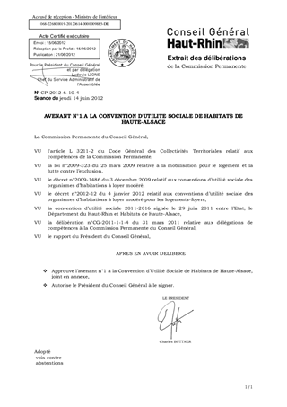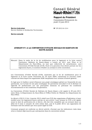 AVENANT N°1 A LA CONVENTION D'UTILITE SOCIALE DE HABITATS DE HAUTE-ALSACE