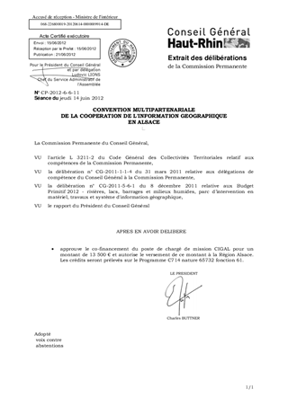 CONVENTION MULTIPARTENARIALE DE LA COOPERATION DE L'INFORMATION GEOGRAPHIQUE EN ALSACE