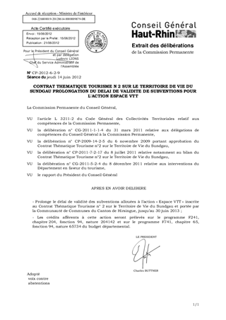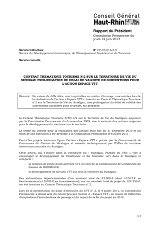 CONTRAT THEMATIQUE TOURISME N 2 SUR LE TERRITOIRE DE VIE DU SUNDGAU PROLONGATION DU DELAI DE VALIDITE DE SUBVENTIONS POUR L'ACTION ESPACE VTT