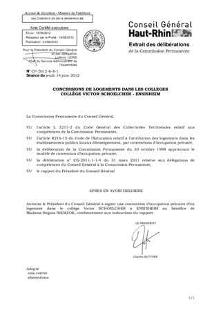 CONCESSIONS DE LOGEMENTS DANS LES COLLEGES COLLÈGE VICTOR SCHOELCHER - ENSISHEIM