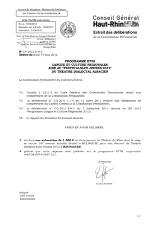 PROGRAMME E758 LANGUE ET CULTURE REGIONALES AIDE AU "FESTIV'ALSACE JEUNES 2012" DU THEATRE DIALECTAL ALSACIEN