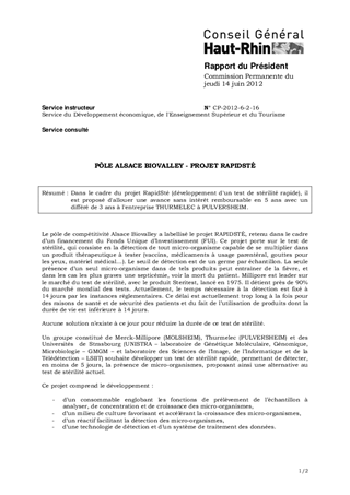 PÔLE ALSACE BIOVALLEY - PROJET RAPIDSTÉ