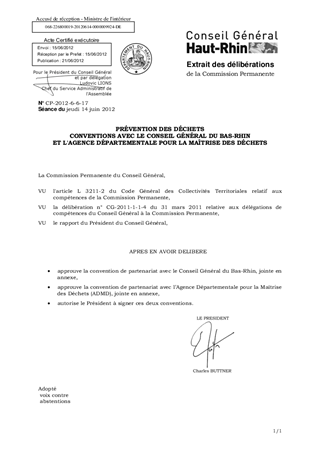 PRÉVENTION DES DÉCHETS CONVENTIONS AVEC LE CONSEIL GÉNÉRAL DU BAS-RHIN ET L'AGENCE DÉPARTEMENTALE POUR LA MAÎTRISE DES DÉCHETS