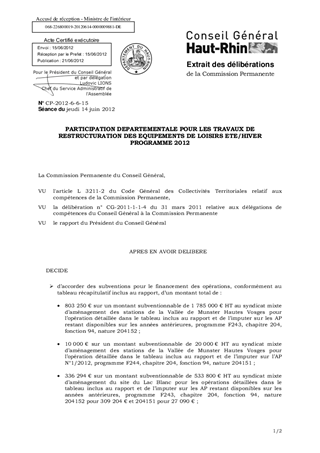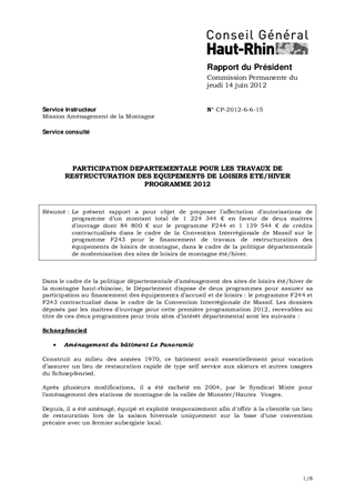 PARTICIPATION DEPARTEMENTALE POUR LES TRAVAUX DE RESTRUCTURATION DES EQUIPEMENTS DE LOISIRS ETE/HIVER PROGRAMME 2012