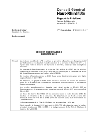 DECISION MODIFICATIVE 1 EXERCICE 2012