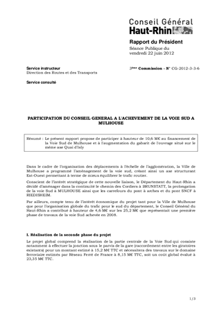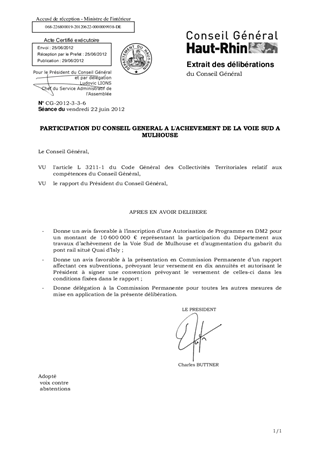 PARTICIPATION DU CONSEIL GENERAL A L'ACHEVEMENT DE LA VOIE SUD A MULHOUSE