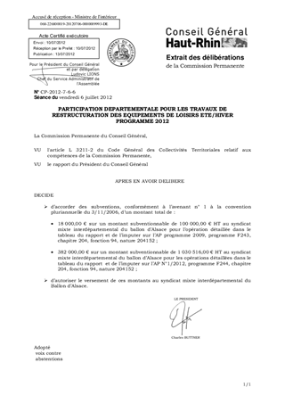 PARTICIPATION DEPARTEMENTALE POUR LES TRAVAUX DE RESTRUCTURATION DES EQUIPEMENTS DE LOISIRS ETE/HIVER PROGRAMME 2012