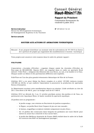 Il est proposé d'attribuer un montant total de subventions de 49 100 € en faveur de 3 porteurs de projets qui organisent des manifestations à vocation touristique.