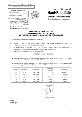 ROUTES DÉPARTEMENTALES PROGRAMMES N° A111 ET A132 AFFECTATION DES AUTORISATIONS DE PROGRAMME