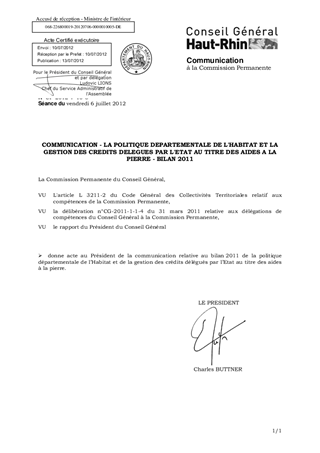 COMMUNICATION - LA POLITIQUE DEPARTEMENTALE DE L'HABITAT ET LA GESTION DES CREDITS DELEGUES PAR L'ETAT AU TITRE DES AIDES A LA PIERRE - BILAN 2011