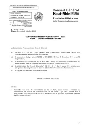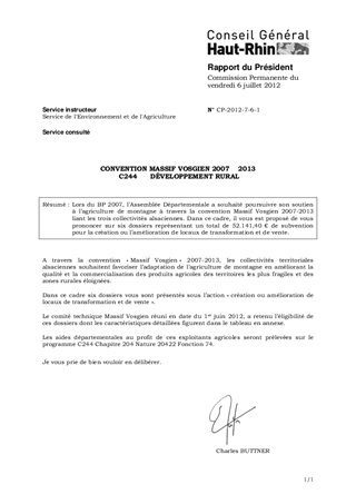 CONVENTION MASSIF VOSGIEN 2007 2013 C244 DÉVELOPPEMENT RURAL