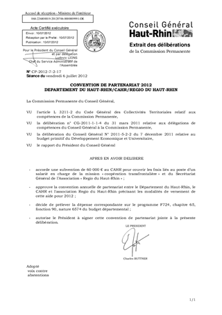 CONVENTION DE PARTENARIAT 2012 DEPARTEMENT DU HAUT-RHIN/CAHR/REGIO DU HAUT-RHIN