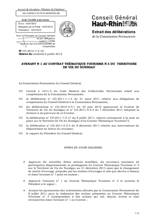 AVENANT N 1 AU CONTRAT THÉMATIQUE TOURISME N 3 DU TERRITOIRE DE VIE DU SUNDGAU
