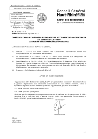Programmation des aides à attribuer au titre du programme 2012 des bâtiments communaux et édifices cultuels pour un montant de 21 189 €