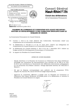 Il est proposé au titre du présent rapport d'allouer à la Chambre de Commerce et d'Industrie Sud Alsace Mulhouse une subvention de 45 000 € en 2012 afin de soutenir le développement d'une formation innovante dans le domaine du design et d'approuver la convention afférente.