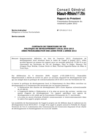 CONTRATS DE TERRITOIRE DE VIE POLITIQUE DE DEVELOPPEMENT LOCAL 2010 2013 2ÈME PROGRAMMATION DES AIDES POUR L'ANNEE 2012