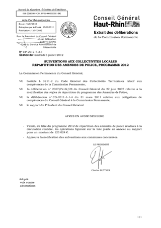 SUBVENTIONS AUX COLLECTIVITES LOCALES REPARTITION DES AMENDES DE POLICE, PROGRAMME 2012