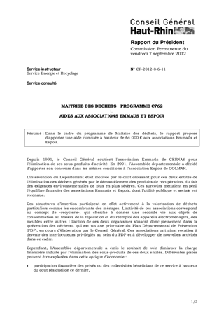 MAITRISE DES DECHETS PROGRAMME C762 AIDES AUX ASSOCIATIONS EMMAUS ET ESPOIR