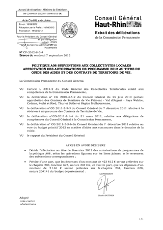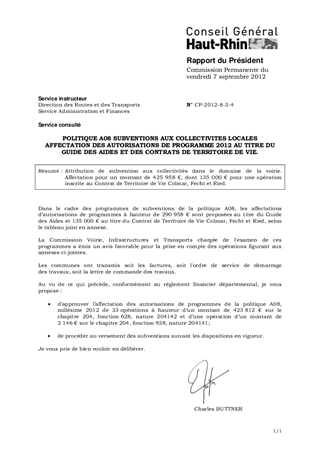 POLITIQUE A08 SUBVENTIONS AUX COLLECTIVITES LOCALES AFFECTATION DES AUTORISATIONS DE PROGRAMME 2012 AU TITRE DU GUIDE DES AIDES ET DES CONTRATS DE TERRITOIRE DE VIE.