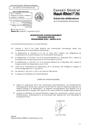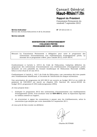 SUBVENTIONS D'INVESTISSEMENT COLLEGES PRIVES PROGRAMME E252 ANNEE 2012