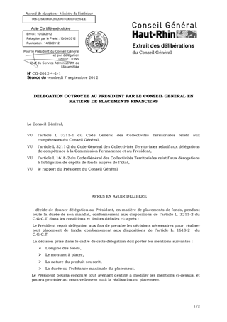 DELEGATION OCTROYEE AU PRESIDENT PAR LE CONSEIL GENERAL EN MATIERE DE PLACEMENTS FINANCIERS