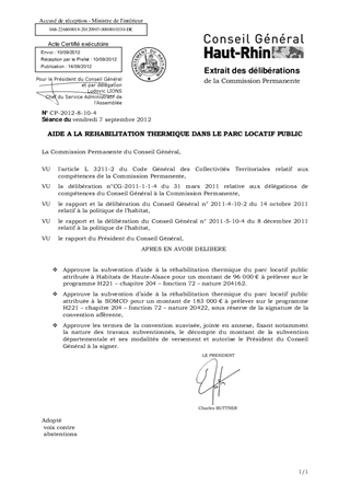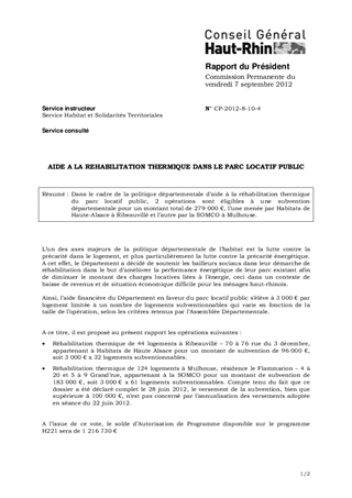 Dans le cadre de la politique départementale d’aide à la réhabilitation thermique du parc locatif public, 2 opérations sont éligibles à une subvention départementale pour un montant total de 279 000 €, l’une menée par Habitats de Haute-Alsace à Ribeauvillé et l’autre par la SOMCO à Mulhouse.