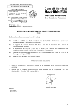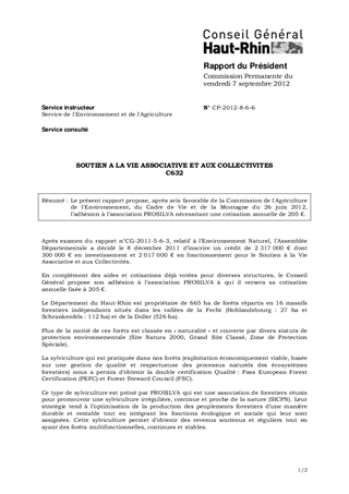 Le présent rapport propose, après avis favorable de la Commission de l'Agriculture de l'Environnement, du Cadre de Vie et de la Montagne du 26 juin 2012, l’adhésion à l’association PROSILVA nécessitant une cotisation annuelle de 205 €.