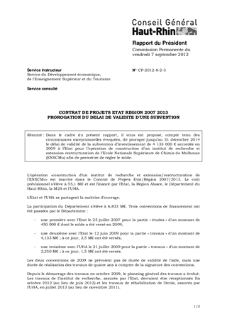 CONTRAT DE PROJETS ETAT REGION 2007 2013 PROROGATION DU DELAI DE VALIDITE D'UNE SUBVENTION