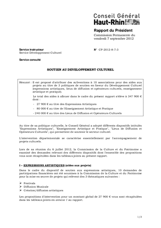 SOUTIEN AU DEVELOPPEMENT CULTUREL