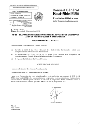 RD 55 - TRAVAUX DE SECURISATION ENTRE LA RD 422 ET LE CARREFOUR AVEC LA RUE DE L'EGLISE Á BALDERSHEIM. PROGRAMMES A111 ET A171