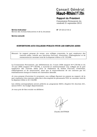SUBVENTIONS AUX COLLEGES PUBLICS POUR LES EMPLOIS AIDES