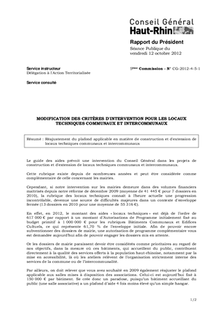 MODIFICATION DES CRITÈRES D'INTERVENTION POUR LES LOCAUX TECHNIQUES COMMUNAUX ET INTERCOMMUNAUX