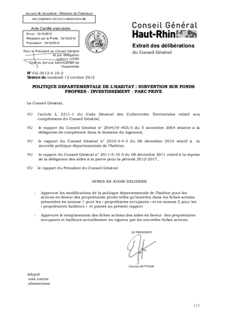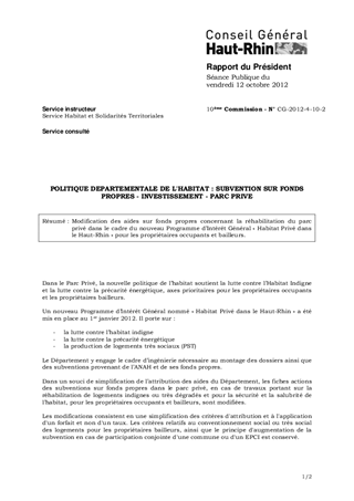 Modification des aides sur fonds propres concernant la réhabilitation du parc privé dans le cadre du nouveau Programme d’Intérêt Général « Habitat Privé dans le Haut-Rhin » pour les propriétaires occupants et bailleurs.